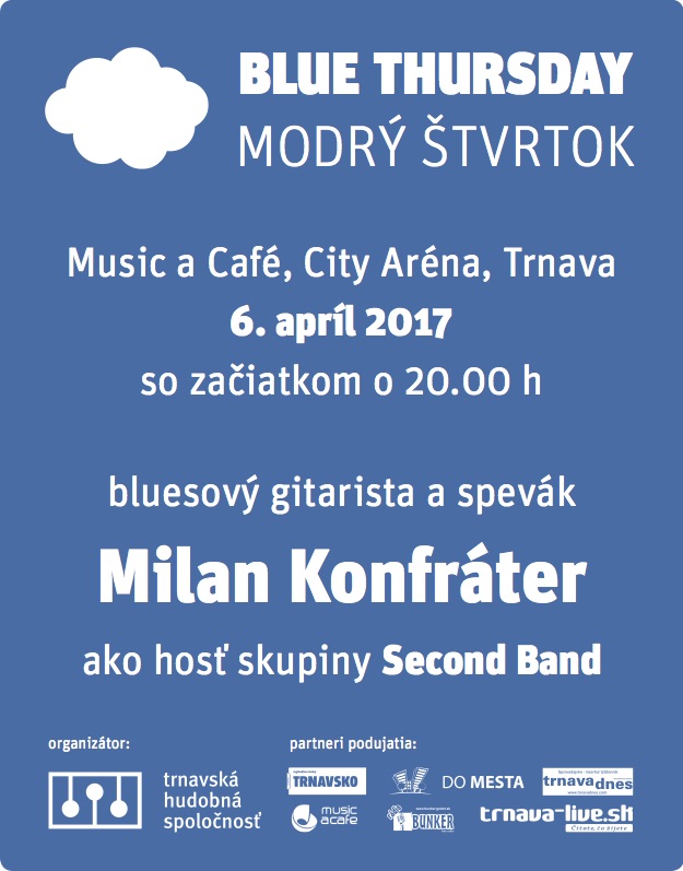 Už jedenástym pokračovaním klubovej série Modrých štvrtkov - Blue Thursday – z réžie Trnavskej hudobnej spoločnosti, o.z. a domácej bluesovej skupiny Second Band je večer s hosťom – spevákom, gitaristom, skladateľom Milanom Konfráterom. Na trnavkej klubovej scéne sa objavil so skupinou Black Cat Moan alebo ako Milan Konfráter Blues Band na historicky prvom ročníku Blues Moods v roku 2010. Takisto sa predstavil niekoľkokrát aj ako sólista v trnavských kluboch. Väčšiu publicitu mu však prinieslo účinkovanie so skupinou Dozen Frozen - Ericha “Boboša” Procházku alebo z projektu bratislavského hudobníka Laca Lučeniča - Satisfactory ako aj z projektu Rolling Stones Anniversary Band. Okrem iného je aj organizátor letného festivalu v rodnom Pezinku s názvom Blues na Mlyne. Ako autor má nahraté z roku 2013 CD s rovnomenným názvom - Milan Konfráter, ktoré nahral úplne sám. V každom prípade ide o vyzretého autora, gitaristu a speváka, ktorý je osviežením klubovej scény.