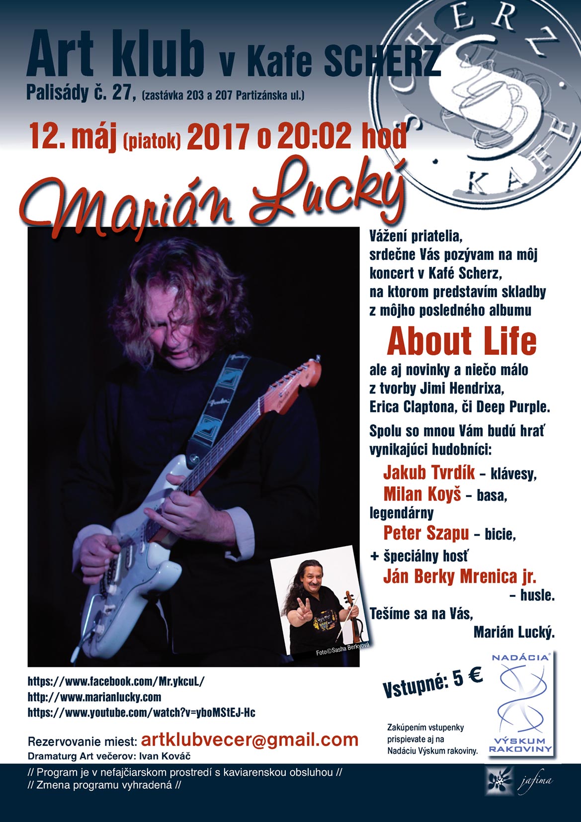 Pozvánka ART klub v kafe Scherz : MARIÁN LUCKÝ 12.máj 2017