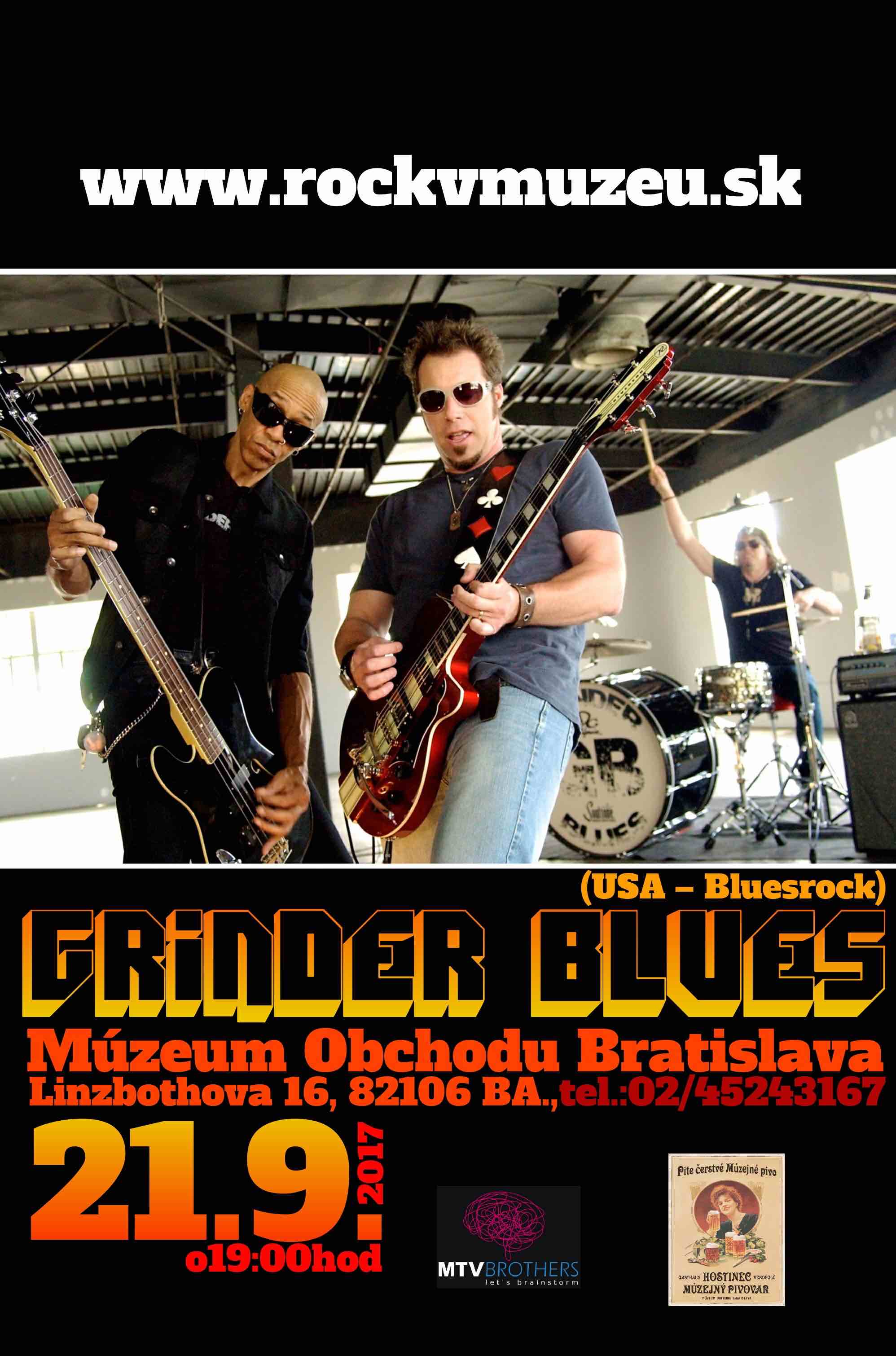 Tlačová správa: Múzeum obchodu prináša v rámci ojedinelého projektu „Rock v múzeu“, vo štvrtok, 21.9. do Bratislavy dravú, novú, americkú bluesrockovú skupinu Grinder Blues.