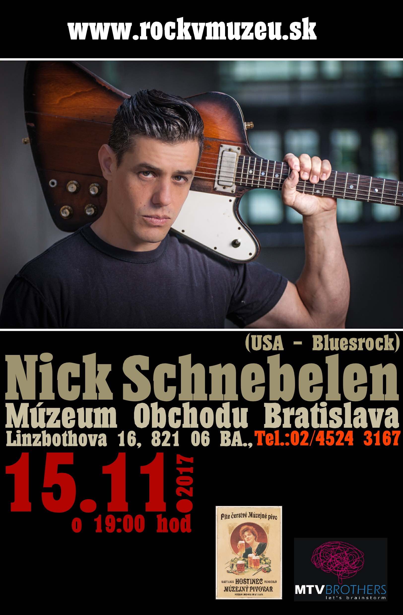 Tlačová správa: Múzeum obchodu prináša v rámci ojedinelého projektu „Rock v múzeu“, v stredu, 15.11. do Bratislavy vynikajúceho amerického bluesrockového gitaristu Nicka Schnebelena.