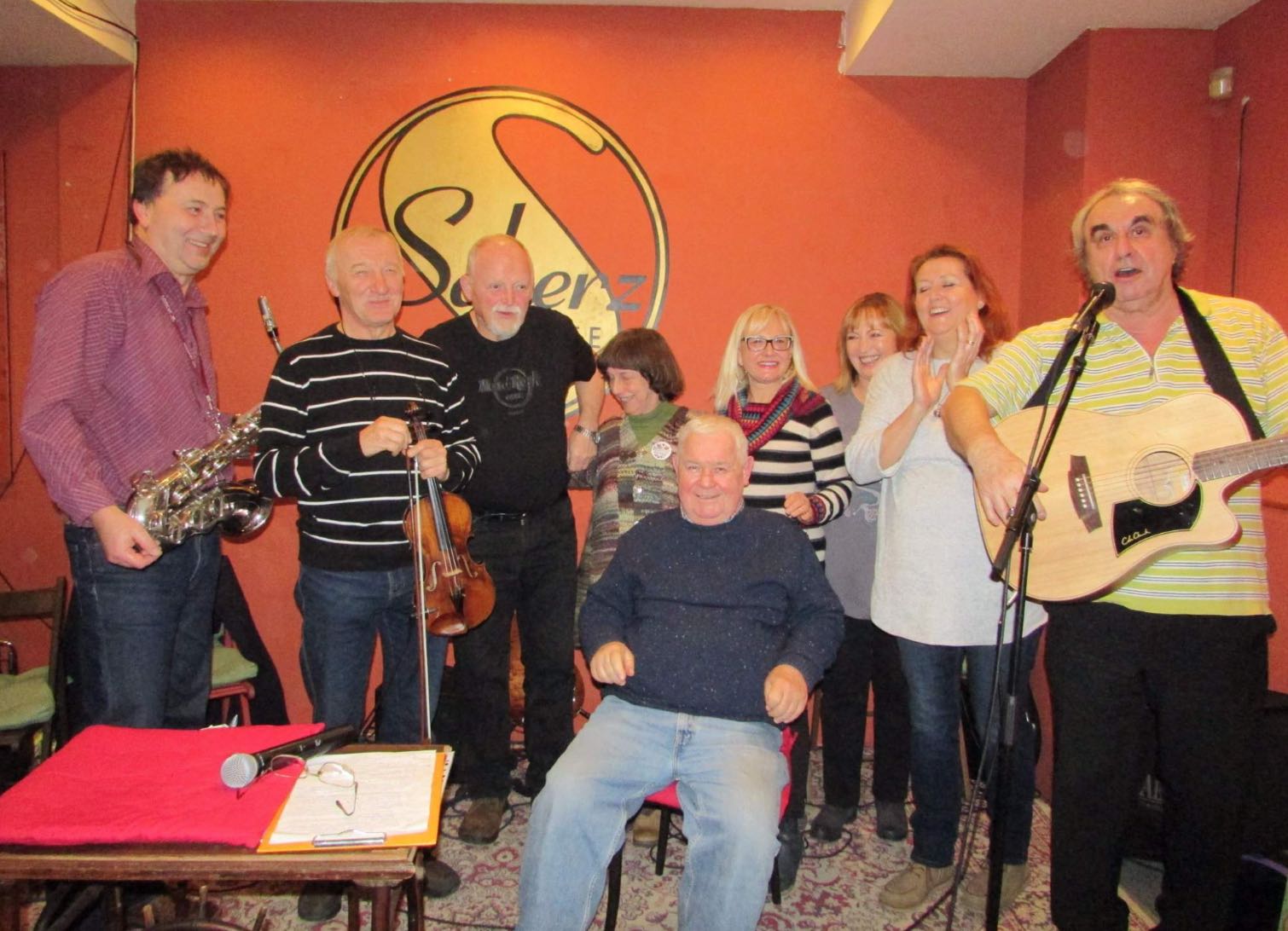 Uvítanie dvojCD Bluesová spoločnosť No12 sme naplánovali na utorok 14.3.2017 do Kafé Scherz na 19,09hod. Čo čert nechcel, na ten istý dátum a čas hrala v Múzeu obchodu americká bluesová gitarová legenda James Blood Ulmer. My, ako uvítači sme mali obavy, či okrem hudobníkov vôbec niekto do Kafé príde. Predsa len Ulmer je Ulmer a v jeho pokročilom veku šanca vidieť ho v Bratislave už asi nebude. Naše obavy zostali visieť vo vzduchu a čuduj sa svete, Kafé bolo nacvaknuté do posledného miesta.
